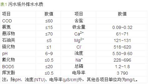 電滲析脫鹽裝置進(jìn)水為污水場外排水,在污水場正常運(yùn)轉(zhuǎn)時(shí),其外排水水質(zhì)如表1。