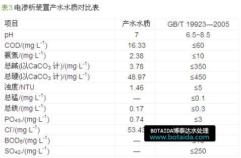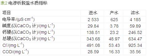 將電滲析裝置產(chǎn)水與《城市污水再生利用/工業(yè)用水水質(zhì)》(GB/T 19923—2005)中要求的標(biāo)準(zhǔn)進(jìn)行對比,結(jié)果見表3。