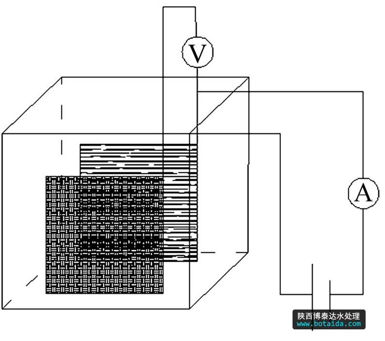 半導(dǎo)體電催化氧化法是近年來發(fā)展起來的一種新型處理技術(shù),它可通過陽極反應(yīng)產(chǎn)生·OH、O3等氧化劑,通過電極上發(fā)生的氧化還原反應(yīng),將難降解的有機(jī)污染物分解為較小分子,最終產(chǎn)物為CO2和H2O,從而顯著地降低COD〔4〕。