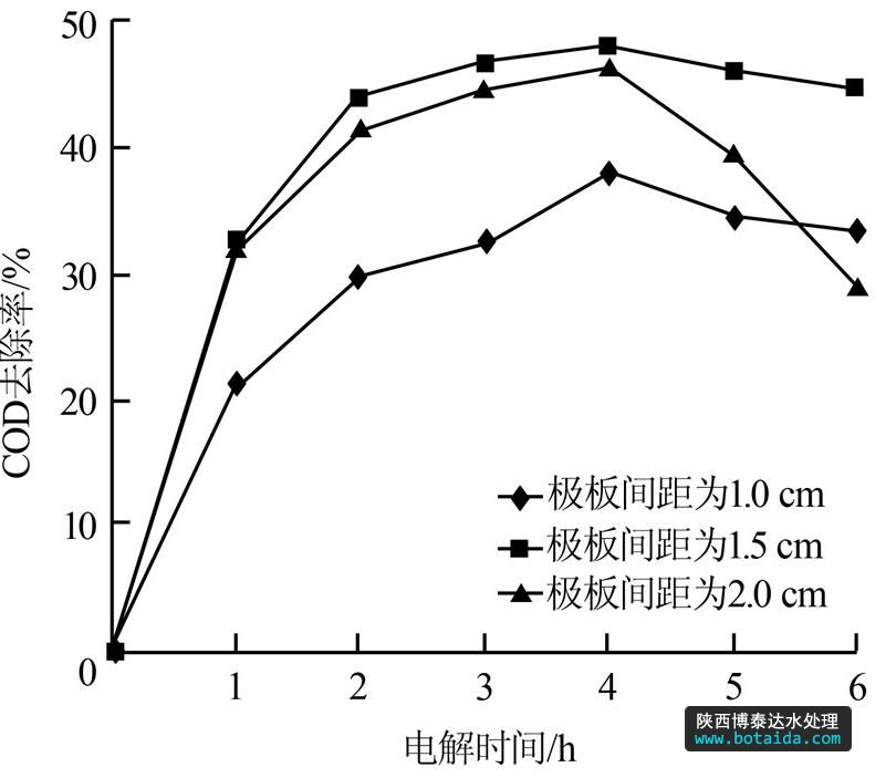 2.5 極板間距對COD去除效果的影響