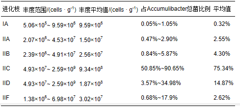 表3 12個(gè)樣品中C and idatus Accumulibacter中各進(jìn)化分支的比例