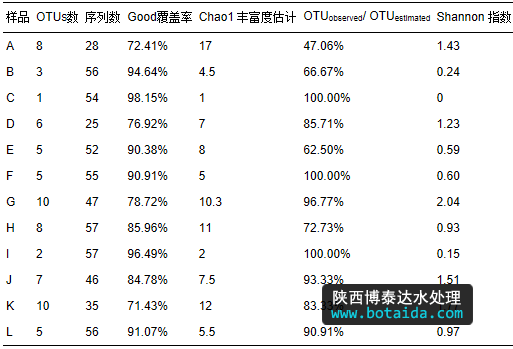 3.2 12個(gè)活性污泥樣品中C and idatus Accumulibacter 基于OTU的多樣性分析