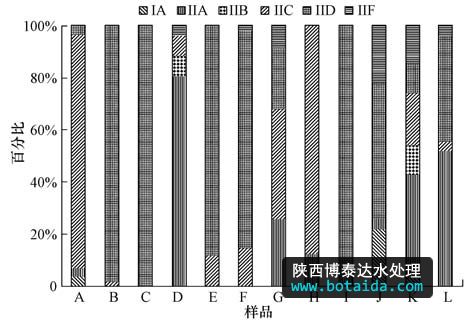 2)12個(gè)活性污泥樣品的系統(tǒng)發(fā)育分析也證實(shí)了Accumulibacter以Type II 為主,Type I少量存在.TypeII中以IIC、IID、IIA為主,IIB、IIF豐度偏低.