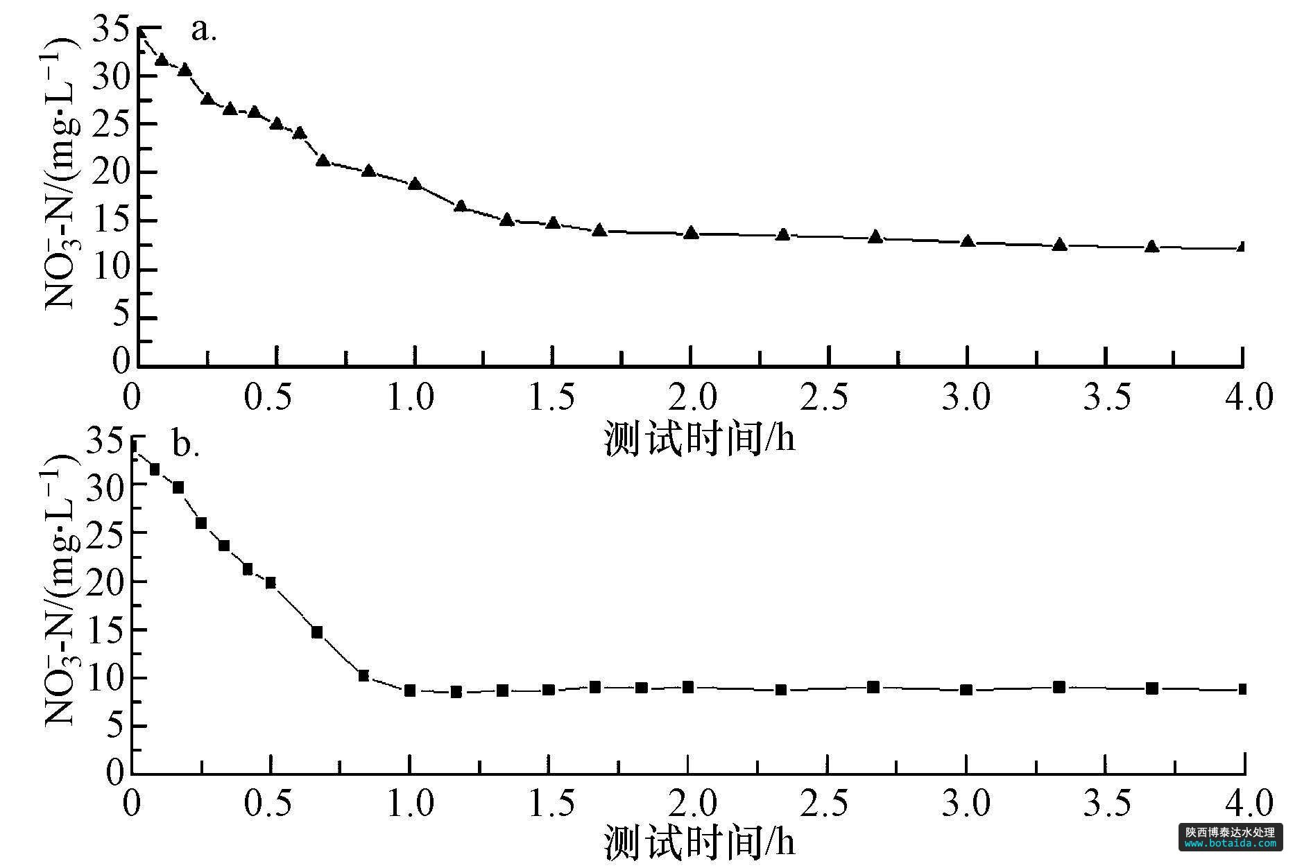 圖5 反硝化測(cè)試曲線(a.未優(yōu)化組(僅MW-H2O2-OH預(yù)處理)的污泥上清液(徐榮樂,2014);b.優(yōu)化組(MW-H2O2-OH預(yù)處理并去除殘留H2O2+水解酸化)的污泥上清液)