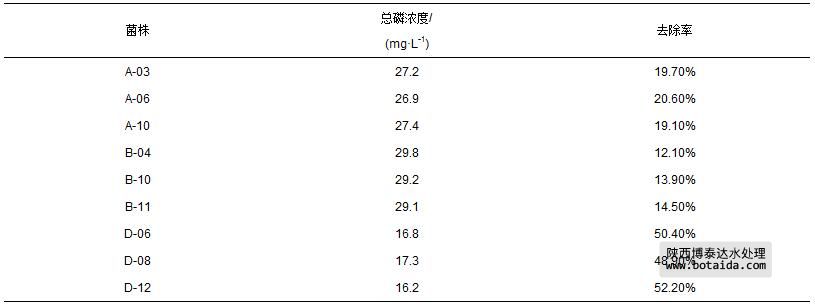 隨后,對EA、EB和ED共9株聚磷菌進(jìn)行復(fù)篩實驗. 分別缺磷培養(yǎng)12 h后,轉(zhuǎn)接于富磷培養(yǎng)基中繼續(xù)培養(yǎng)24 h,測定除磷率,結(jié)果如表 1所示. 可知,ED-12對磷的去除能力最強,可達(dá)52.2%,因此,選擇菌株ED-12作進(jìn)一步研究.
