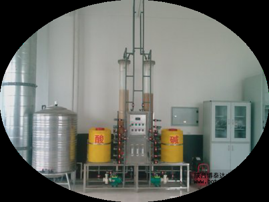 混床是混合離子交換柱的簡(jiǎn)稱(chēng),是針對(duì)離子交換技術(shù)所設(shè)計(jì)的設(shè)備。所謂混床,就是把一定比例的陽(yáng)、陰離子交換樹(shù)脂混合裝填于同一交換裝置中,對(duì)流體中的離子進(jìn)行交換、脫除。由于陽(yáng)樹(shù)脂的比重比陰樹(shù)脂大,所以在混床內(nèi)陰樹(shù)脂在上陽(yáng)樹(shù)脂在下。一般陽(yáng)、陰樹(shù)脂裝填的比例為1:2,也有裝填比例為1:1.5的,可按不同樹(shù)脂酌情考慮選擇?;齑惨卜譃轶w內(nèi)同步再生式混床和體外再生式混床。同步再生式混床在運(yùn)行及整個(gè)再生過(guò)程均在混床內(nèi)進(jìn)行,再生時(shí)樹(shù)脂不移出設(shè)備以外,且陽(yáng)、陰樹(shù)脂同時(shí)再生,因此所需附屬設(shè)備少,操作簡(jiǎn)便。
