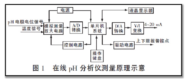 (1)全智能化。采用單片微處理機(jī)完成pH 測(cè)量、溫度測(cè)量和補(bǔ)償。