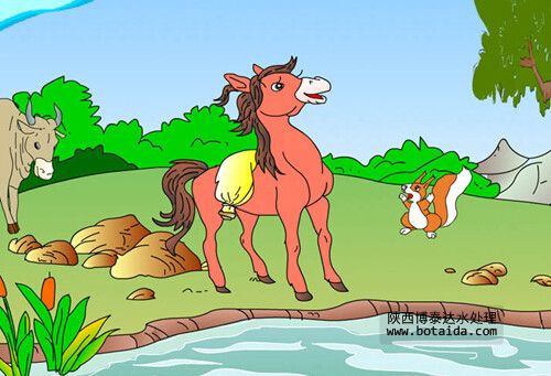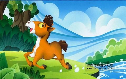 可是河上沒有橋,只能自己 淌過去??捎植恢篮铀卸嗌钅??猶豫中的小馬一抬頭,看見了正在不遠處吃草的牛伯 伯。小馬趕緊跑過去問到:“牛伯伯,您知道那河里的水深不深呀?” 牛伯伯挺起他那高大的身體笑著說:“不深,不深。才到我的小腿。”小馬高興地跑回 河邊準備淌過河去。
