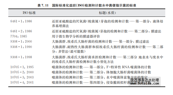 國際標準方法在被采納之前應根據(jù)當?shù)氐木唧w情況進行評估。可以使用已建立的標準 方法,如國際標準化組織(ISO)(見表7.11)的方法或效果及可靠性與其相當?shù)姆椒ň刹?用。對于常規(guī)檢測可采用那些已建立的方法。無論選用何種方法檢測埃希氏大腸桿菌或耐 熱性大腸菌群,都必須考慮因環(huán)境或消毒劑受到損傷的微生物菌株的“復蘇”或“恢復”問題。