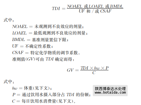 多年來,聯(lián)合國糧農(nóng)組織(FAO)/世界衛(wèi)生組織(WHO)的食品添加劑聯(lián)合專家委員會(huì) (JECFA)和聯(lián)合國糧農(nóng)組織/世界衛(wèi)生組織農(nóng)藥殘留聯(lián)席會(huì)議(JMPR)已經(jīng)就確定ADIs制 訂了一些原則(FAO/WHO,2009),這些原則已被采納,在適當(dāng)?shù)那闆r下,可以用來制定飲 用水水質(zhì)的準(zhǔn)則值。