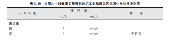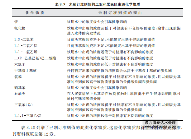 表8.9列舉了尚未制訂準則值的來源于工業(yè)和居民區(qū)活動的化學物質,并在表中說明 了理由,其資料概覽見第12章。