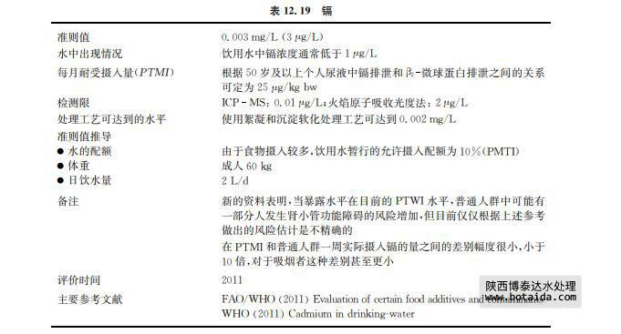 鎘化合物的吸收取決于它們的溶解度。鎘主要在腎臟蓄積,在人體的生物半衰期長達 10~35年。有證據(jù)表明,鎘能夠通過吸入途徑致癌。IARC將鎘及鎘的化合物列入2A組 (對人類很可能(probably)是致癌物)。不過,目前沒有鎘經(jīng)口途徑致癌的證據(jù),鎘的遺傳毒 性也沒有明確的研究。腎臟是鎘毒性的主要靶器官。 在對鎘最近的評估中,JECFA相關報告表明,50歲及以上個人的尿液中生物標志物β2 微球蛋白的排泄數(shù)據(jù)可用于確定尿液中鎘的臨界濃度。每克肌酸酐含量小于5.24μg鎘的 尿液與β2 微球蛋白的增加排泄不相關,導致尿鎘濃度為5.24μg/g肌酸酐的食物攝取量估 計為每天0.8μg/kgbw或約每月25μg/kgbw。由于鎘的超長生物代謝半衰期,暫定 犘犜犕犐值為25μg/kgbw,取代了之前設定犘犜犠犐的7μg/kgbw。