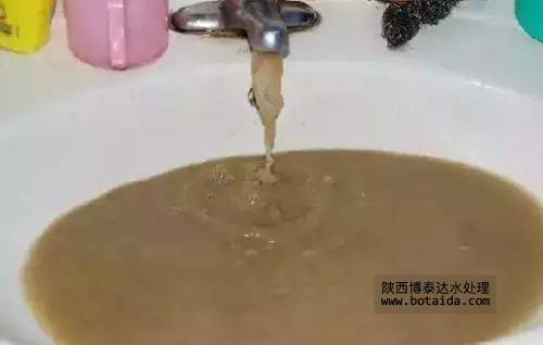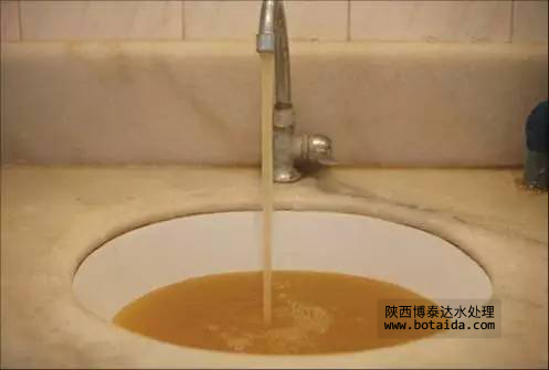 由于老化的自來水管道生銹,鐵銹隨著自來水從水管出口流出