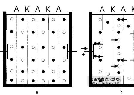 1929年,泡利(W. Pauli)和雅爾科(E. Yalko)首次描述了三室電滲析裝置,置于中間室的料液中的陰離子和陽(yáng)離子在電場(chǎng)作用下分別進(jìn)入正極室和負(fù)極室。1935年,特奧雷爾(T. Teorell)建立了荷電膜理論,認(rèn)識(shí)到陽(yáng)離子選擇性透過(guò)膜含有帶負(fù)電荷的固定離子,陰離子選擇性透過(guò)膜含有帶正電荷的固定離子。1939年,馬內(nèi)戈?duì)柕拢‥. Manegold)和卡勞奇(C. Kalauch)首次在三室電滲析裝置中同時(shí)使用陰離子選擇性透過(guò)膜和陽(yáng)離子選擇性透過(guò)膜。