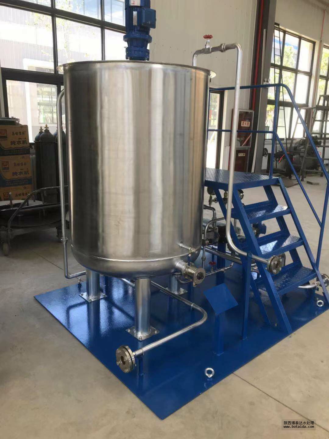 反滲透純凈水設備全自動加藥設備根據高分子藥劑具有難溶解、易結塊、長期暴露空氣易凝結的特點制作,解決了采用常規(guī)的簡易溶藥,人工投加會產生浪費人力、投加量不精確、投加不均勻產生固化物等問題。本系統是一個智能化、全自動、連續(xù)式一體化的絮凝劑溶配及投藥裝置,配制溶液范圍為0-6000升/小時,濃度為0.1%-0.5%。