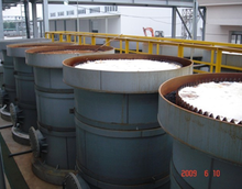 催化微電解是在不通電的情況下,利用微電解設(shè)備中填充的微電解填料產(chǎn)生“原電池”效應(yīng)對廢水進(jìn)行處理。當(dāng)通水后,在設(shè)備內(nèi)會形成無數(shù)的電位差達(dá)1.2V 的“原電池”。“原電池”以廢水做電解質(zhì),通過放電形成電流對廢水進(jìn)行電解氧化和還原處理,以達(dá)到降解有機污染物的目的。在處理過程中產(chǎn)生的新生態(tài)[.O H] 、[H] 、[O]、Fe2+ 、Fe3+等能與廢水中的許多組分發(fā)生氧化還原反應(yīng),比如能破壞有色廢水中的有色物質(zhì)的發(fā)色基團或助色基團,甚至斷鏈,達(dá)到降解脫色的作用;生成的Fe2+ 進(jìn)一步氧化成Fe3 +,它們的水合物具有較強的吸附- 絮凝活性,特別是在加堿調(diào)pH 值后生成氫氧化亞鐵和氫氧化鐵膠體絮凝劑,它們的絮凝能力遠(yuǎn)遠(yuǎn)高于一般藥劑水解得到的氫氧化鐵膠體,能大量絮凝水體中分散的微小顆粒、金屬粒子及有機大分子。該工藝具有適用范圍廣、處理效果好、成本低廉、處理時間短、操作維護(hù)方便、電力消耗低等優(yōu)點,可廣泛應(yīng)用于工業(yè)廢水的預(yù)處理和深度處理中。應(yīng)用廢水種類:染料廢水、焦化廢水、醫(yī)藥廢水、農(nóng)藥廢水、樹脂廢水、助劑廢水、制革廢水、電鍍廢水、造紙廢水、淀粉廢水、大蒜廢水、垃圾滲濾液等工業(yè)類廢水。