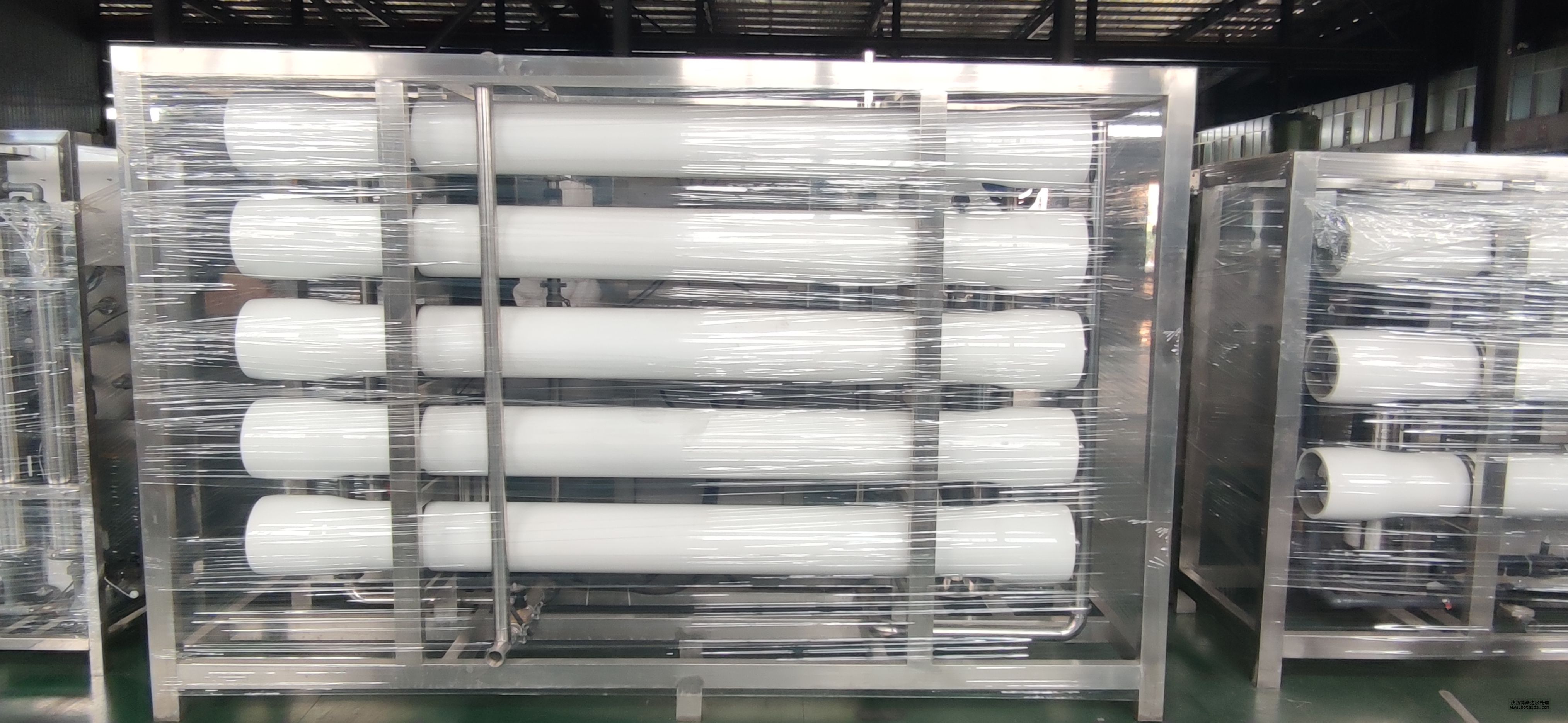 反滲透原理:就是在有鹽分的水中(如原水),施以比自然滲透壓力更大的壓力,使?jié)B透向相反方向進(jìn)行,把原水中的水分子壓力到膜的另一邊,變成潔凈的水,從而達(dá)到除去水中雜質(zhì)、鹽分的目的。實(shí)質(zhì)是脫水技術(shù)。
